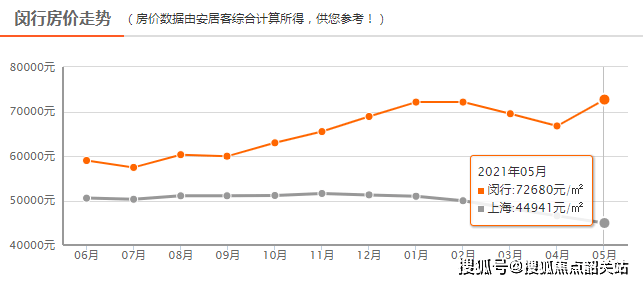 上海虹桥机场片区近一年房价走势(数据来源:安居客)