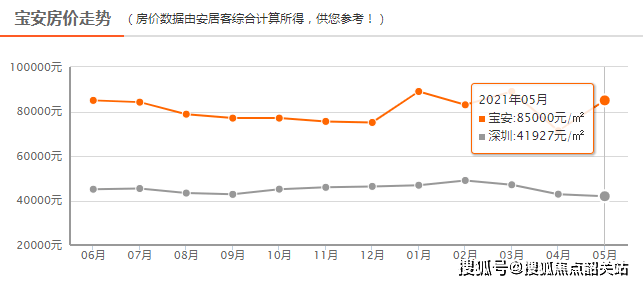 深圳宝安机场片区近一年房价走势(数据来源:安居客)