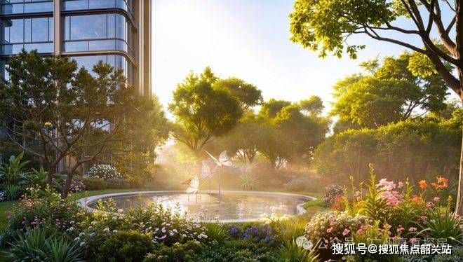 景观系统是香江1号的重要表达语言。项目内部规划约2万平方米园林景观空间,以东方审美与西方印象派艺术理念结合进行设计。园林灵感来源于经典艺术花园形态,通过约250种不同植物品类构建多层次生态景观系统。植物配置不仅考虑视觉美学,还结合空气湿度调节与微气候优化逻辑,使社区内部形成相对独立的小型生态环境。香草植物与芳香型植被组合形成自然疗愈空间,配合雾森系统,使空气湿度和舒适度保持在较为宜居的水平。社区景观不仅是观赏空间,更承担社交活动与家庭休闲的多重功能。