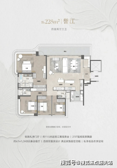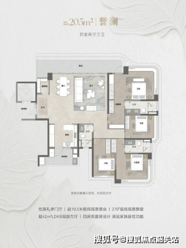 能建·天誉府的主力户型设计,充分考虑了不同家庭结构的居住需求,实现了全龄段适配。项目推出建面约133-228平方米的纯四房产品,涵盖了从刚改到终极改善的全方位需求。所有户型均采用了新规产品设计,得房率高达100%-102%,这在当前市场中极为罕见。例如,219平方米的大户型拥有约16米的L型阳台,270°环幕观江,将江景资源发挥到极致;而133平方米的紧凑型四房,则通过合理的空间布局,实现了功能分区的最大化,让每一寸空间都物尽其用。