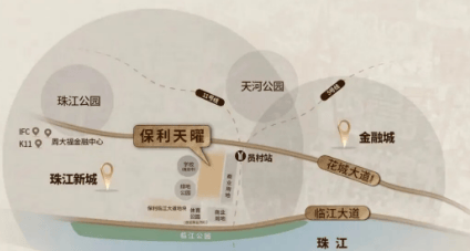 生活半径内,3公里覆盖K11、天汇广场、广粤天地等高端商业,往东一站到科韵路还有金融城广场。医疗资源也密集,中山六院金融城院区、华侨医院、中山三院都在5公里内。值得一提的是,项目未来可能共享南方面粉厂地块的商业配套,加上珠城马场片区改造推进,区域生活能级还在持续抬升。