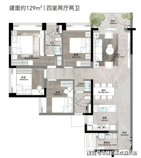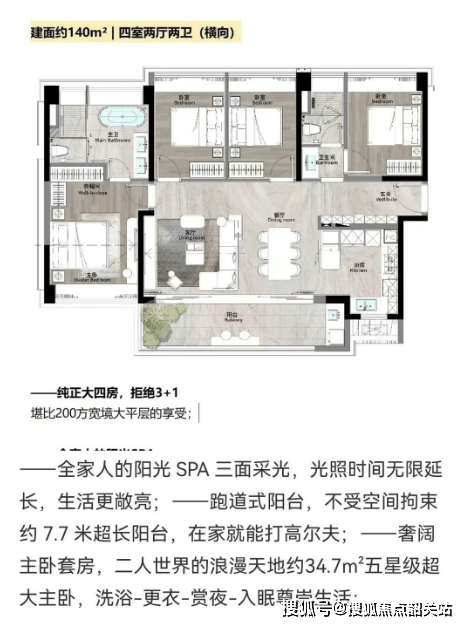 首推户型:125㎡至180㎡四房户型