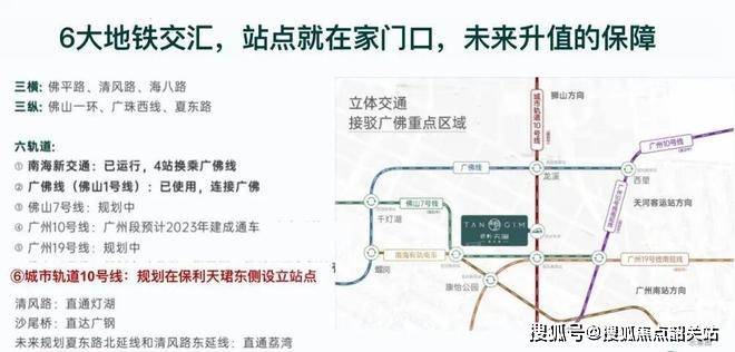 在交通方面,保利映月湖天珺项目虽不临近直达地铁,但距离南海有轨电车约2公里,可通过电动车或公交换乘广佛线快速抵达千灯湖商圈,换乘佛山地铁2号线亦可快速通往番禺。项目邻近平洲大桥,直达广州南站,自驾出行十分便捷,同时可通过桂平路和佛山一环快速连接千灯湖核心及广州海珠工业大道,交通网络覆盖面广,满足在广州西部及南海区通勤的家庭需求,通勤效率高而灵活。