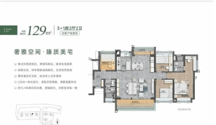 129㎡四房二卫户型:四房设计满足家庭成长的需求,空间布局合理,动静分区,双卫设计方便家庭成员使用,为改善型购房者提供了理想的居住空间。