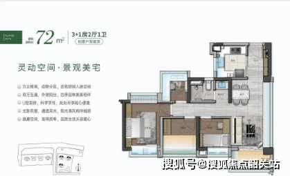72㎡四房一卫户型:精巧设计,在有限的空间内实现四房布局,满足刚需家庭对空间的需求,为年轻家庭提供了温馨的居住选择。