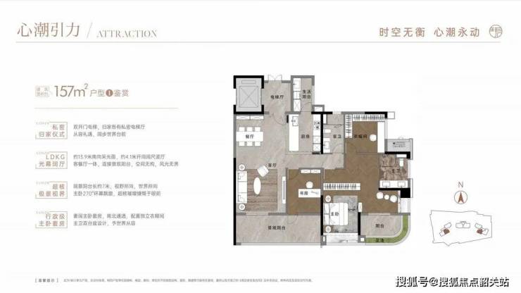 保利华创·都荟天珺提供多种大平层户型供购房者选择,面积从157平方米到257平方米不等,所有户型均为双阳台配置,力求采光面做到最大化。特别邀请全球三大豪宅名师联袂设计,包括LWK+PARTNERS建筑事务所、AECOM、梁志天集团等,从建筑到园林再到室内设计,均采用顶尖团队当纲。每个户型的转角都设计成270°飘窗,拥有全面屏的景观视野。