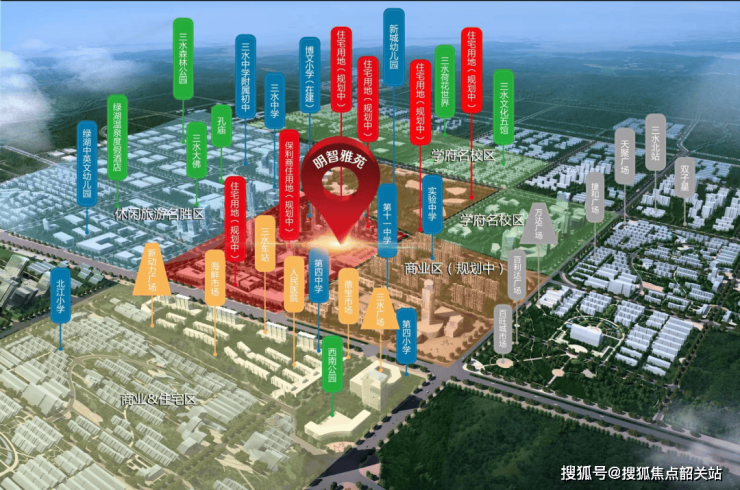 明智雅苑位于三水新城与北江新区交汇处,奢享双城繁华与自然生态,是三水未来发展核心区域。