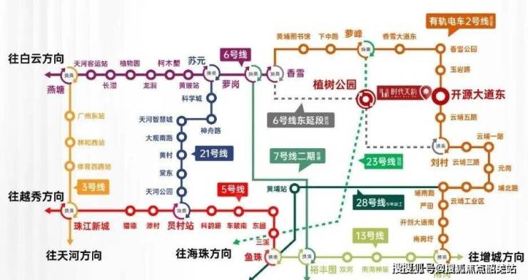 公交枢纽:项目门口设开源大道东站,13条公交线路覆盖黄埔、天河、增城