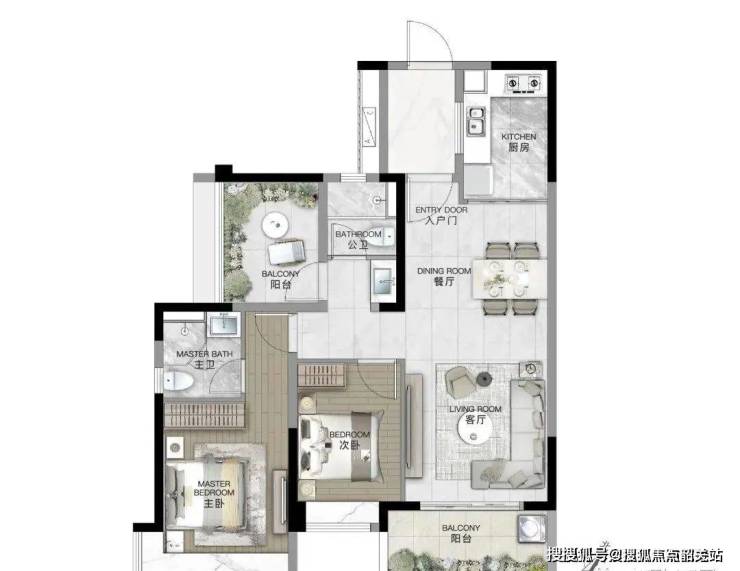 98平三房:经典竖厅设计,动静分区明确,主卧配备270°观景大飘窗,带来绝佳视野享受。