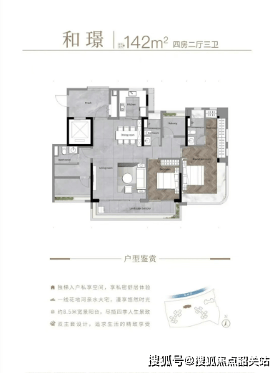(主力户型详解 - 建面约 142㎡四房两卫)