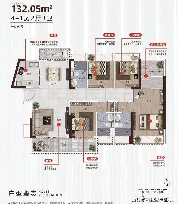 7座04户型:4+1房2厅3卫 建面约132.05㎡