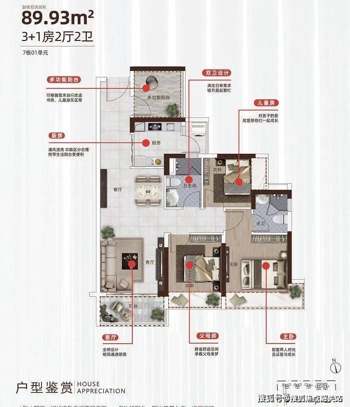 7座01户型:3+1房2厅3卫 建面约89.93㎡