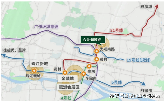 合景臻颐府位于天河智谷板块南部,地理位置优越。交通方面,自驾可快速衔接珠江新城、智慧城、金融城核心片区,通过白云机场、广州南站实现跨城互联;现有地铁 21 号线智慧城站(1.5KM,AI 智慧车站)、4 号线黄村站(2KM),规划中的地铁 19 号线大观南站(2025 年开通)将进一步升级公共交通;在建广佛东环线、穗莞深城际轨道直通两大交通枢纽,出行便捷度高。周边配套成熟,商业方面 5-10 分钟可达奥体板块商业、万科广场、美林天地(含山姆、宜家);教育有奥体东小学(华阳教育集团)、执信中学天河校区、清华附中湾区学校等;医疗资源完善,满足高端居住生活需求。