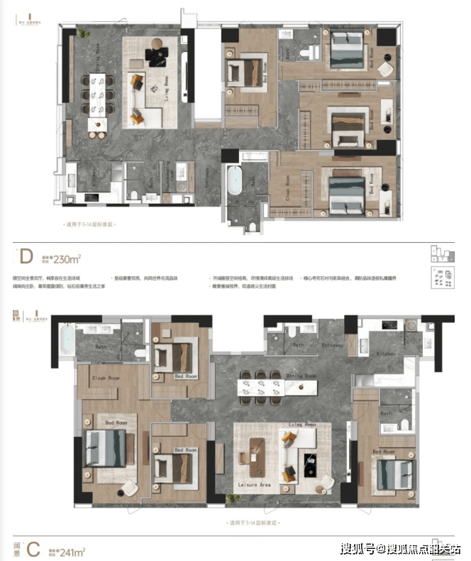 低区:早期主打79–161㎡小户型,现已升级为230㎡、241㎡四房大平层,适合改善型家庭;