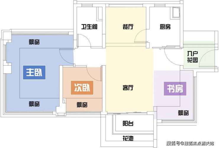 ②舒适格局:4开间朝南、稀缺南北对流、带入户花园、主卧270°环幕飘窗
