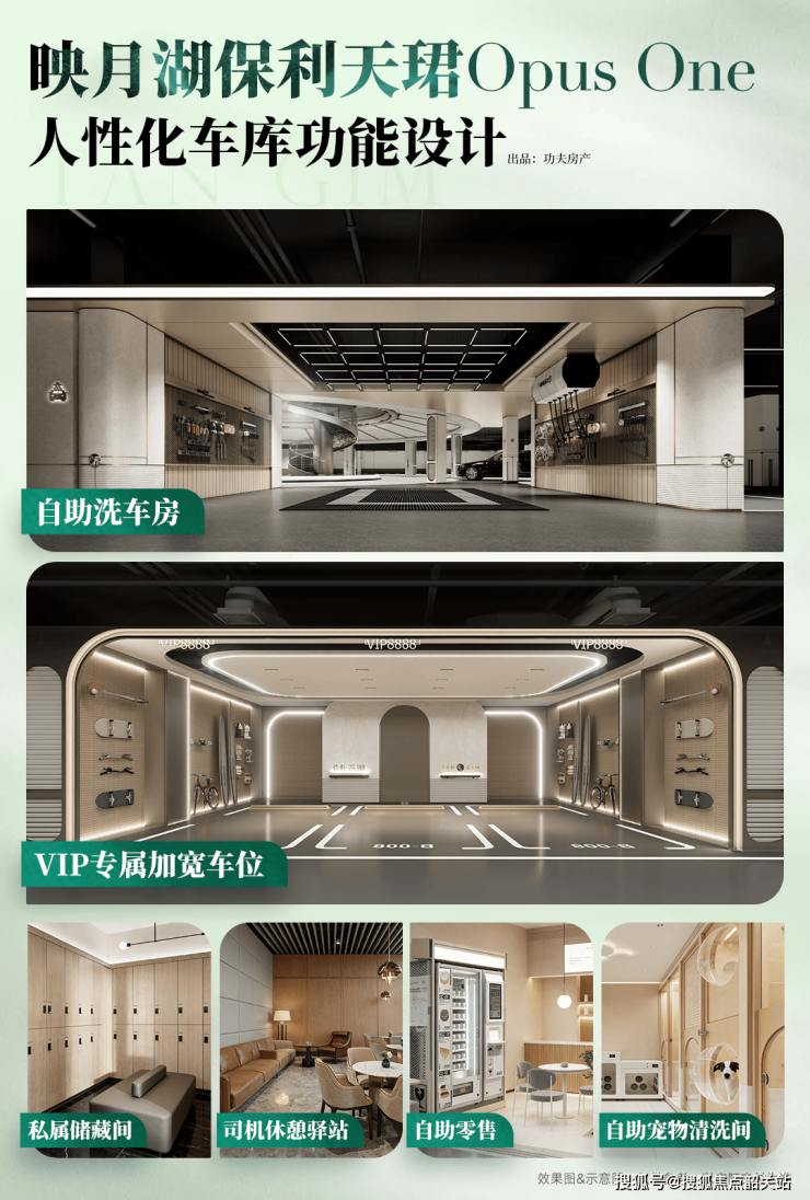 在美学表达之外,项目更将人性化考量落到了车库空间的细微之处。地库内专门规划了自助洗车房、司机休憩驿站、自助零售区、自助宠物清洗间等全维功能空间,同时针对高净值客群打造了 VIP 专属加宽车位与私属储藏间,业主的每一个潜在需求,都在规划之初被周全考量,让豪宅的尊崇感,不止于视觉震撼,更藏于日常的每一处细节里。