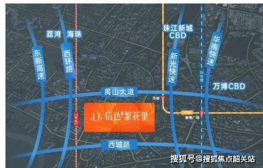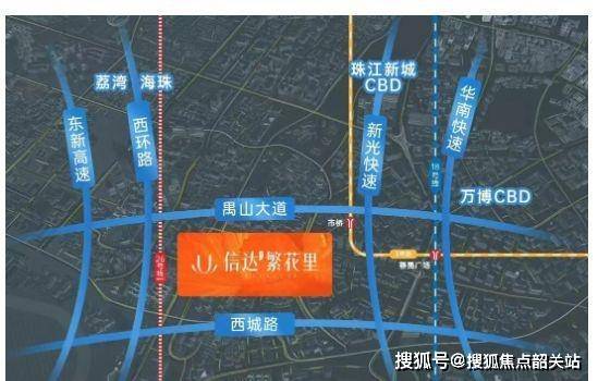 规划优势:规划中的 26 号线有望在禺山大道和西环路交界处设站,届时该项目极有可能成为地铁上盖物业,交通便利性将进一步提升。项目临近禺山大道、西环路两大主干道,接驳东新高速可直达荔湾、海珠,接驳新光快速可畅达万博 CBD、珠江新城 CBD,通达全城。