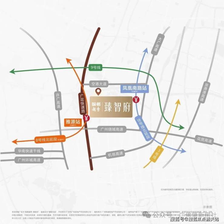 距地铁18号线北延段(在建)凤凰南路站,直线距离约1公里(数据来源:百度地图),5站到广州东,链接湾区5城。