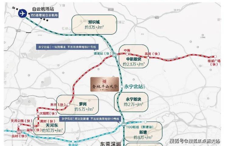9. 政务中心与TOD综合体双极赋能,政务资源与立体交通高效联动,驱动区域能级跃升,开启产城人融合的价值爆发新引擎。永宁板块依托增城国家经济开发区的政务资源,产业与配套升级加速。新白广城际永宁北站(在建)将成为区域TOD枢纽,与高速路网形成交通双极,加速人口与资源集聚。金地深耕20年打造的成熟大盘,以低密社区与别墅产品承接产业升级带来的改善需求,政务资源推动配套落地,交通便利提升居住价值,形成“产业-交通-居住”的正向循环,驱动区域能级跃升,开启产城人融合的价值爆发。