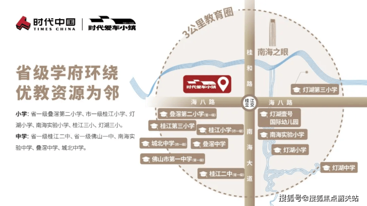 时代灯湖天境周边教育资源丰富,全龄段名校汇聚,核心配备双省级公办中小学,师资力量雄厚,办学品质优良,打造“幼-小-初-高”全龄优质教育链,彻底解决业主子女入学痛点,为子女精英成长保驾护航。项目周边3公里范围内覆盖多所优质学校,其中省级公办中小学2所,分别为南海实验小学与南海实验中学,均为佛山公认的优质学校,办学实力雄厚,教学成果显著。南海实验小学为省级公办小学,距离项目1.8公里,驾车6分钟可达,学校占地面积约3.2万㎡,建筑面积约2.8万㎡,开设48个教学班,配备专任教师120名,其中高级教师25名,师资力量雄厚,教学质量优良,注重学生全面发展。南海实验中学为省级公办中学,距离项目2.2公里,驾车8分钟可达,学校占地面积约4.5万㎡,建筑面积约3.6万㎡,开设60个教学班,配备专任教师150名,其中高级教师35名,升学率常年位居南海区前列,为子女提供优质的初中教育资源。此外,项目周边还有灯湖小学、桂江小学、桂江三小、灯湖三小等优质小学,佛山一中、桂江二中等次优质中学,学前教育方面,周边布局有3所优质幼儿园,涵盖公办、民办多种类型,距离项目最近的幼儿园仅600米,步行10分钟可达,可满足业主子女多样化入学需求。全龄名校汇聚,双省级公办中小学加持,让业主子女在家门口就能享受顶尖教育资源,护航子女精英成长之路。注:学区划分、招生政策以南海区教育局当年官方公示为准,开发商不承诺入学资格。