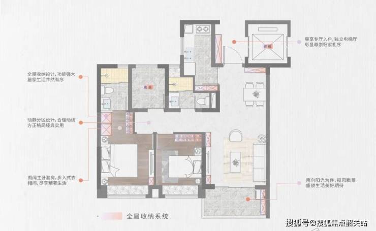 98㎡2+1 房则主打空间感与舒适度,客餐厅通透开阔,三面采光设计让室内明亮度拉满,实际使用率超 9 成。虽卫生间门口正对入户门,但可通过增设玄关巧妙规避,整体布局动静分区合理,适合追求生活品质的小资人群。