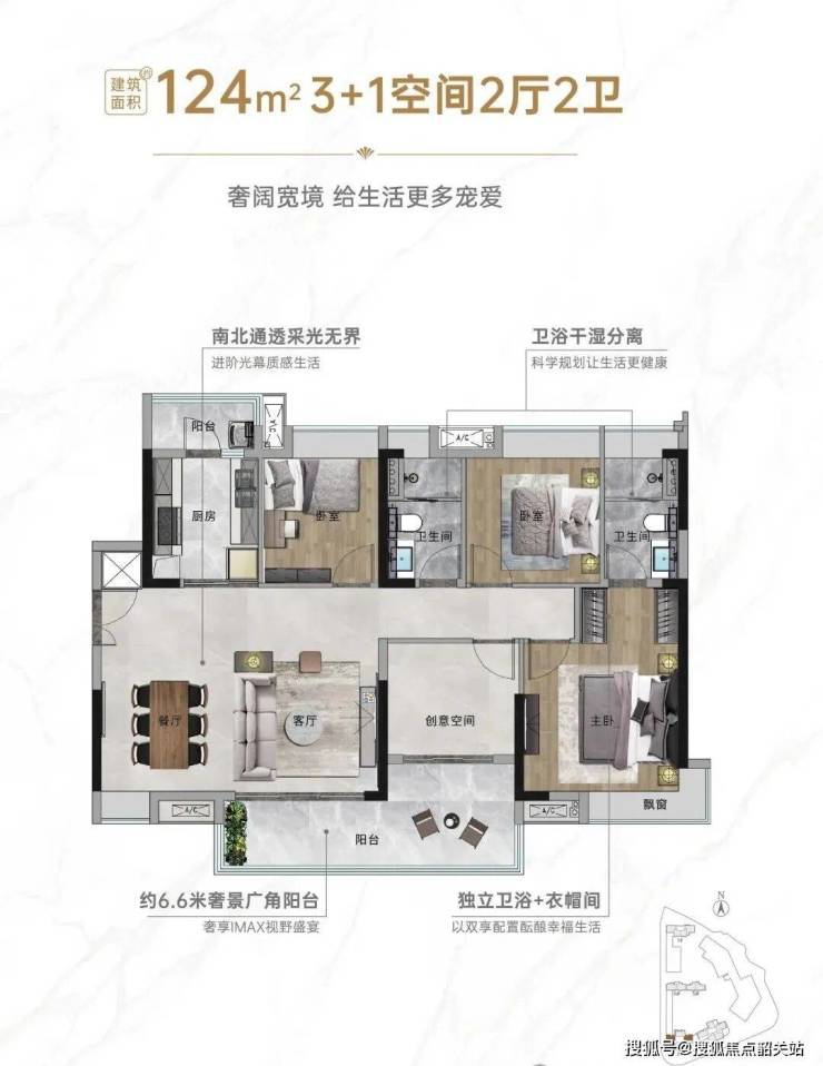 广州城投·禧悦府目前在售的户型涵盖建面约88-122平方米的南向三至四房,每个户型都经过精心设计,力求最大化采光与通风效果。例如,88平方米的2+1房户型设有南北双阳台,功能分区合理;102平方米的2+1房户型则配置了约6.1米的巨幕阳台,观景视野极佳;而124平方米的3+1房户型采用了横厅设计,宽敞大气,特别适合二胎或三胎家庭。