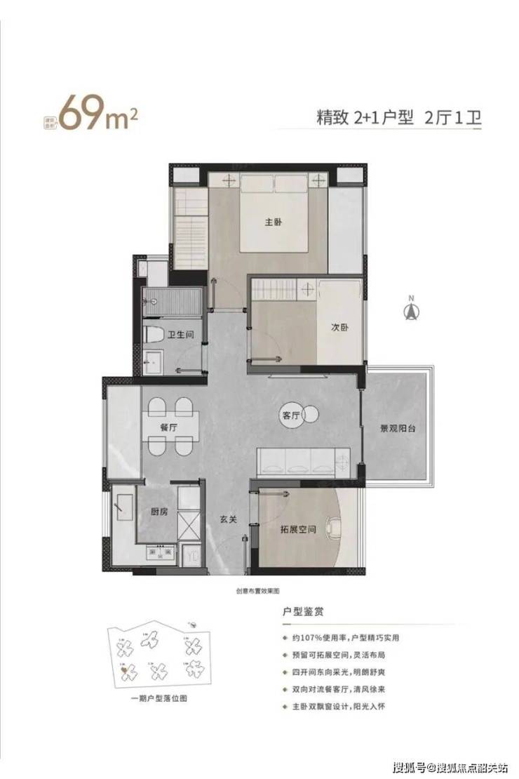 提供从69㎡至182㎡不等的多种“N+1”户型选择,所有户型均采用约99%的高实用率设计,确保每一寸空间都被充分利用,为住户带来更大的使用价值和更舒适的居住体验。