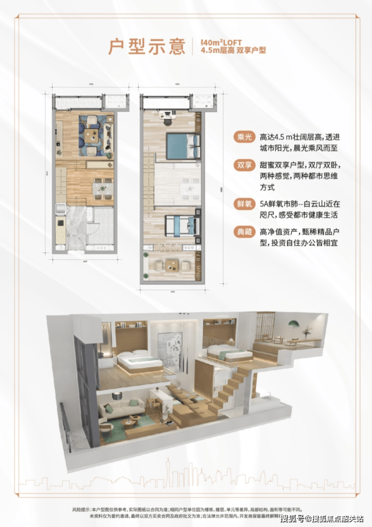 广垦·天河1号主力户型涵盖31-57㎡的中轴精品空间及36-43㎡酒店行政公馆,户型设计兼顾自用、办公及投资需求。观成大楼户型采用4.5米挑高设计,合理规划卧室、厨房、卫生间,实现中小户型的空间最大化,带来墅级居住体验。观云大厦户型则具备3.4-3.6米挑高空间,私密性和灵活性兼顾,适合高效办公或轻奢生活体验。无论是中小面积办公还是高挑空间居住,项目均通过空间解构与功能重组,让小面积也能拥有舒适感和使用效率,满足天河CBD中轴高净值群体的多样化需求。