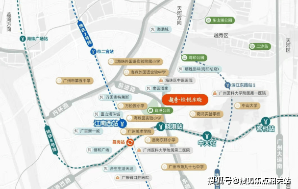 越秀·桂悦东晓地处广州海珠区核心位置,周边交通便利,距离地铁8号线晓港站仅约600米,步行约8分钟即可到达。此外,项目还临近多条主干道,可快速通达珠江新城、琶洲等地。项目的地理位置使其成为连接广州多个重要区域的关键节点,拥有极高的居住和投资价值。