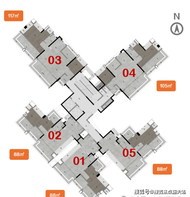 117平方米四房两厅两卫:独立步入式衣帽间,360°环幕公园景观,提升居住体验。