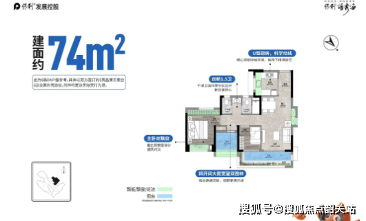77㎡三房两厅两卫:该户型为全新升级三房,设计更加优质。四开间朝南的布局,打造了超11米南向采光面,室内采光通风效果极佳;户型直面广阔园景,通透感明显,让业主在室内就能欣赏到优美的园林景观;豪华大主卧设计,即使是小户型也能享受到舒适的居住体验,轻松放下1.8米大床,U型三面丰富采光,270度超大角度采光,进一步提升了居住舒适度。