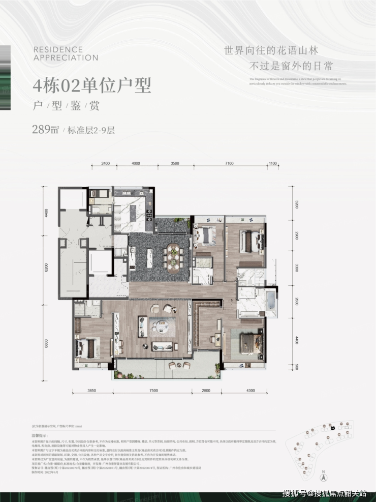 合景臻颐府在售的户型是198方到289方的4房单位。