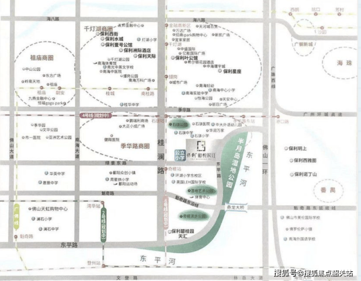 保利和悦滨江所处的桂城半岛位置,是三龙湾规划核心区,也是佛山融入粤港澳大湾区的重点板块。这里拥有四大先天优势:靠近广州南站,交通区位优越,生态资源优良,创新基础扎实。周边交通网络发达,位于千灯湖桂澜路与季华路两条主轴交汇处,享受三纵三横路网,快速连接南海、顺德、禅城等地。通过魁奇路东延线到广州南站仅需约15分钟,广佛经济圈内的通达性极高。地铁方面,周边有规划中的佛山4号线与6号线,季华东路站与石啃站步行可达,同时还有佛山2号线、3号线湾华站在车程5分钟范围内。结合高速路与城轨系统,这里可在一小时内畅达广佛核心区域与湾区主要城市。