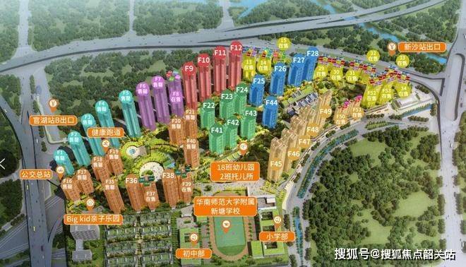 项目内部教育资源完善,华师附新塘学校覆盖小学及初中阶段,社区配套幼儿园及托儿所,形成12年全龄教育体系,满足家庭教育需求。社区内部及周边商业、文化、医疗设施完善,生活便利度高,同时配套大型湿地公园及环山景观,生态居住体验优越。