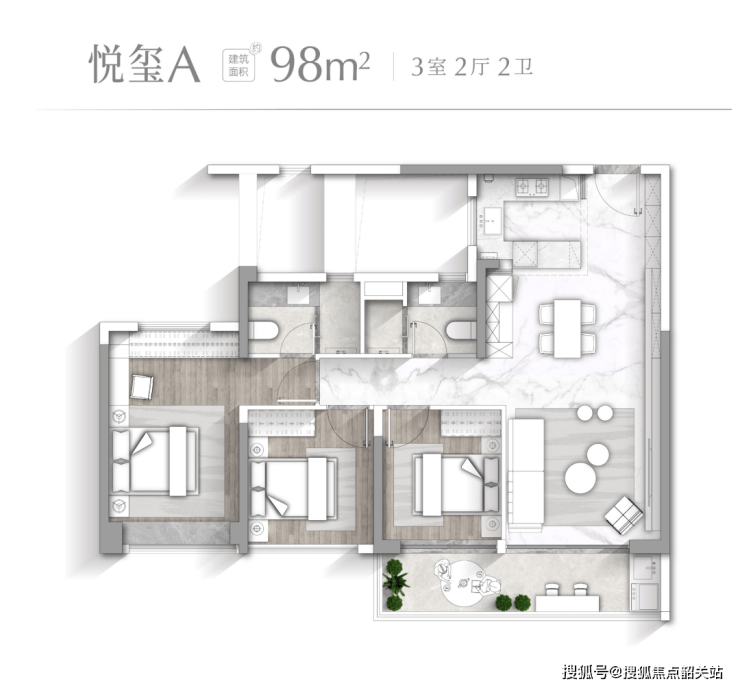 高端户型如悦宸C户型建面约142㎡,拥有超15米展宽,四开间朝南,巨幕采光面,南北对流主卧配三面窗270°采光;悦玺A户型建面约98㎡,全南向阳光三房,客餐厨一体布局,厅卧空间灵活,可连接约6.4米阳台,尊享私密天地。每一户型均体现豪宅尺度、功能舒适和景观价值,让生活品质达到顶级标准。