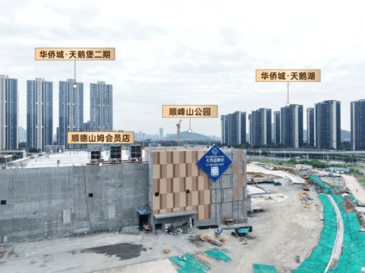 如果说顺峰山是自然的馈赠,那么欢乐海岸PLUS就是都市繁华的极致表达。作为国家4A级景区,欢乐海岸PLUS集购物中心、主题乐园、滨水街区、高端餐饮于一体,日均客流超5万人次,已成为粤港澳大湾区文旅新地标。而华侨城天鹅堡二期,正是其“最近的邻居”——步行约500米即可抵达。更令人期待的是,顺德山姆会员商店主体已于2025年底封顶,预计2026年4月正式开业,将带来超4000种全球精选商品、山姆厨房、健康管理中心等高阶消费场景。未来,随着欢乐海岸二期(规划13.5万㎡文化广场、5.0科幻海洋馆、航天体验基地)的推进,片区商业能级将跃升至城市级甚至湾区级。日常所需?社区底商已引入连锁便利店、生鲜超市、咖啡馆等基础配套,生活便利度正随入住率稳步提升。