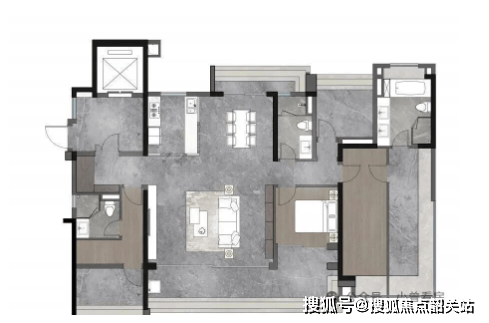 107㎡四房:四开间朝南,面宽达约11.8米,LDKB+X通透宽厅联动5.9米景观阳台,小户型也能拥有大宅尺度;