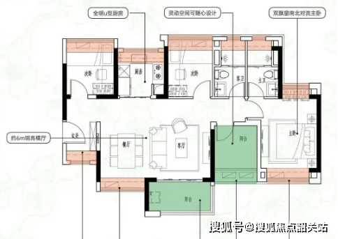 建面约98㎡:4空间2厅2卫,得房率约95%