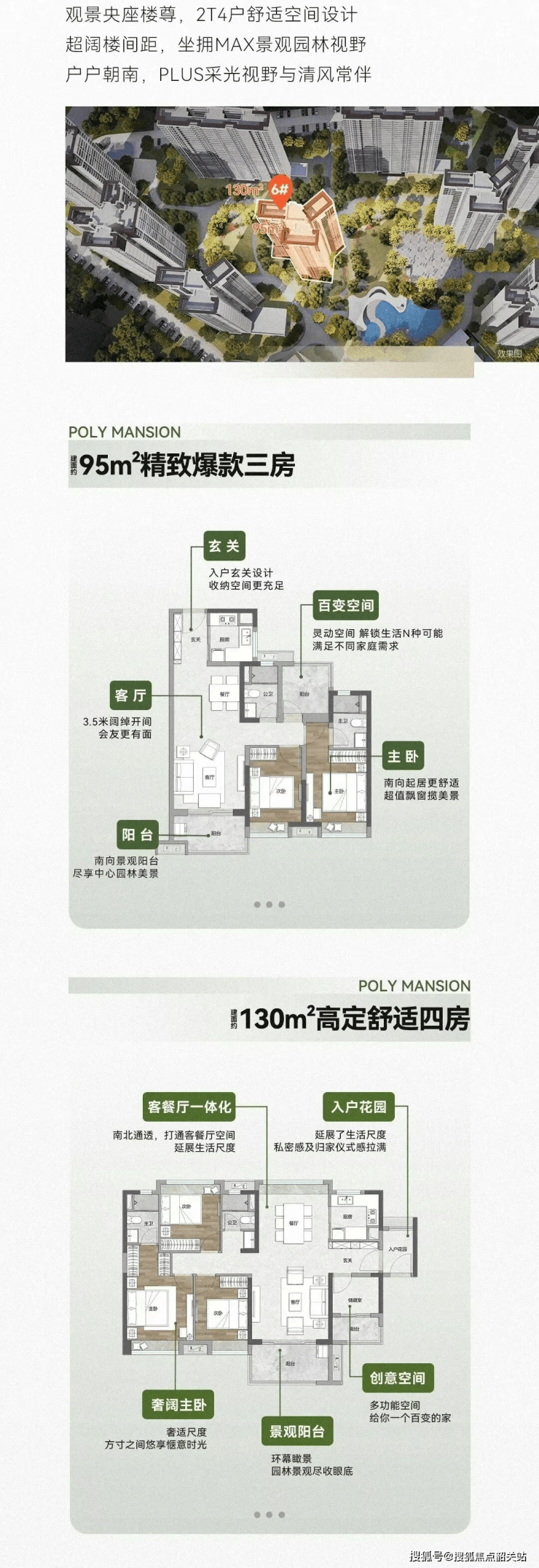 A5:项目在售户型涵盖三至四房,南区主力户型为95㎡三房、125-130㎡四房、138㎡四房双主套;北区主推95-117㎡三至四房,均为6层电梯洋房,可满足不同购房需求。