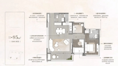 【龙湖亚伦央璟颂】推出了95至142㎡的户型,设计上充分考虑到了空间的灵活性和实用性,最高使用率超过130%。这些户型通过巧妙的设计,既保证了室内空间的宽敞舒适,又满足了不同家庭结构的需求,适合从小家庭到大家庭的不同居住者。