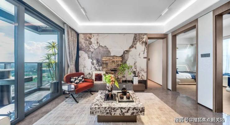 全南向设计与大面积玻璃幕墙结合,阳光透过窗户洒满室内,江景与园景映入眼帘,居住的明亮感与舒适度双重提升,成为金融精英品质生活的重要保障。