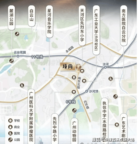 项目教育配套堪称 “天河刚需改善天花板”:配建 4 班公立港日风格幼儿园(下楼即达),一路之隔就是省一级天河区先烈东路小学(本部,无需摇号,步行 2 分钟),根据天河区小升初政策,近年该校可直升省一级第七十五中学,实现 “幼儿园 - 小学 - 初中” 全龄段优质教育覆盖;邻近星海音乐学院、广州工业大学沙河校区,艺术教育氛围浓厚,子女升学与兴趣培养双保障。商业方面,1-3 层裙楼商业自带室内恒温泳池、健身房,3 公里内有时代广场、佳兆业广场、POPARK 东方宝泰等购物中心,日常购物与高端消费需求均能满足;医疗上,周边 3 公里内有广州现代医院、广州市胸科医院、广医附属肿瘤医院等,为家人健康保驾护航。
