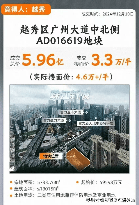 越秀地产在2024年12月以59598万元的总价拿下了位于越秀区广州大道中的地块,楼面价约为每平方米4.6万元。这是自2020年越秀南地块出让以来,越秀区四年来的首次公开土地拍卖。该项目被命名为“越秀東山云起”,作为越秀地产最新的先锋系产品,它将在交标、服务和社群运营理念上与其它项目有所不同,定位极高。