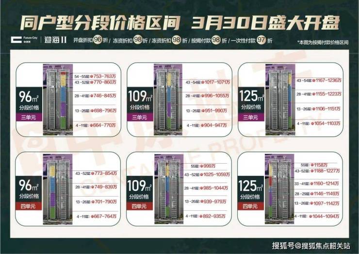 中洲湾迎海二期的定价策略合理且具有竞争力。96㎡户型总价区间在664万至842万元之间,109㎡户型总价约为892万至1017万元,而125㎡户型总价则在1044万至1167万元范围内。从定价逻辑来看,楼层越高、景观越佳的单位价格相对较高,但总体符合市场预期。与其他同板块楼盘相比,如中洲滨海华府一期,迎海二期在户型设计、景观资源及精装标准上更具优势,同时具备一定的价格竞争力。特别是对于追求高品质生活的改善型购房者而言,该项目不仅提供了卓越的居住体验,还在性价比上展现出较强吸引力,是值得考虑的投资选择。