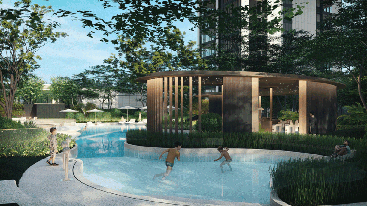 还特别设计了约490㎡的蜿蜒风情泳池,集观景、休憩与运动于一体,营造出私享度假胜地般的居住体验。