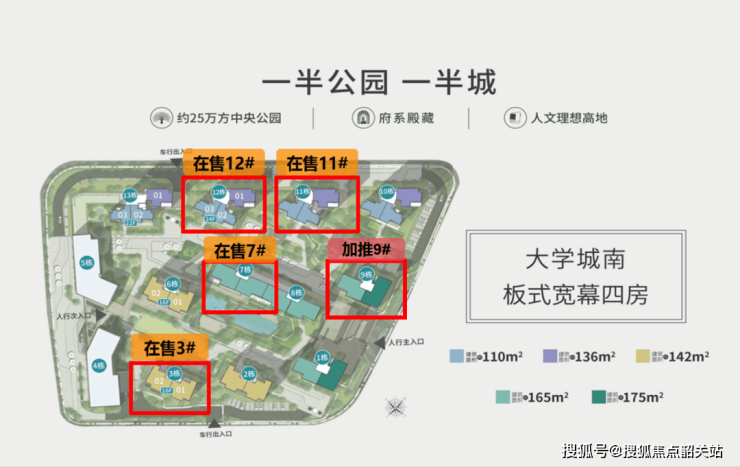 四、社区与楼栋:0.9低密板式,公园环幕头排奢宅礼献塔尖