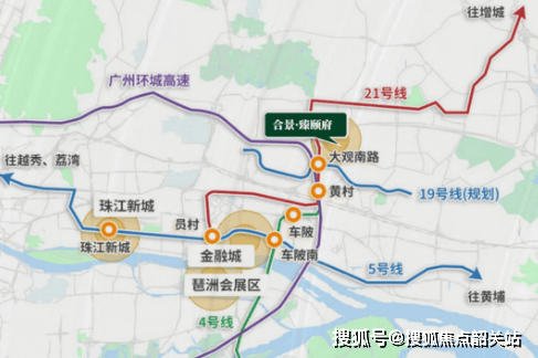 项目地理位置优越,通过自驾车可快速连接至珠江新城等核心区域,并且临近地铁站如21号线智慧城站(约1.5KM)和4号线黄村站(约2KM)。此外,未来还将有更多轨道交通线路开通,进一步增强其交通便利性。
