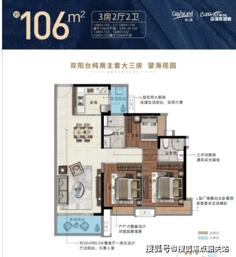 部分户型朝南,采光充足,主卧带独立卫浴,保障私密性,阳台尺度适宜,兼具观景与储物功能。