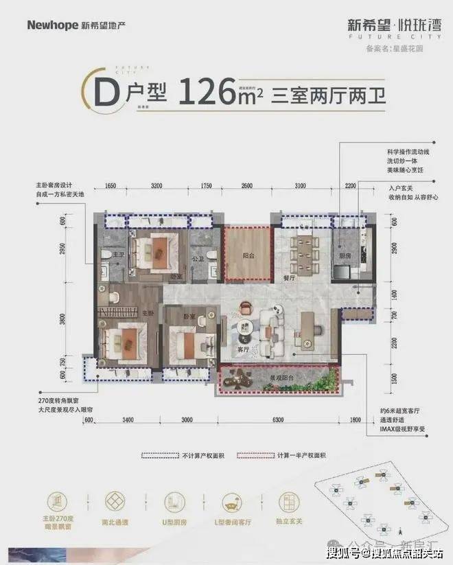 在户型设计方面,新希望·悦珑湾注重功能性的极致发挥,打造了建面约78㎡-126㎡的精致户型。项目精心设计的多功能户型,能够满足不同家庭成员的需求,从二人世界到三口之家甚至三代同堂的全生命周期需求。不同面积段的户型选择可以为业主提供更多灵活的空间布局,充分满足多种生活方式的需求。