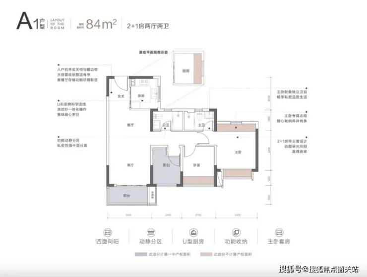 84方:四面向阳,动静分区,U型厨房,主卧套房(180万起)